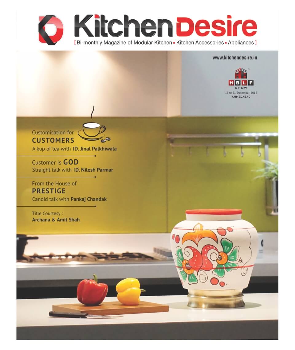 Splashing creativity across different platforms, mediums and canvases, Ar. Archana & Amit Shah love to explore different facets of the design paraphernalia with their unique abilities and novel elements. Giving a novel design perspective to the Title cover of interior design magazine, collaborating with Kevin Publications for their bi-monthly magazine, Kitchen Desire, it was an enriching experience, thoroughly enjoyable and insightful indeed!